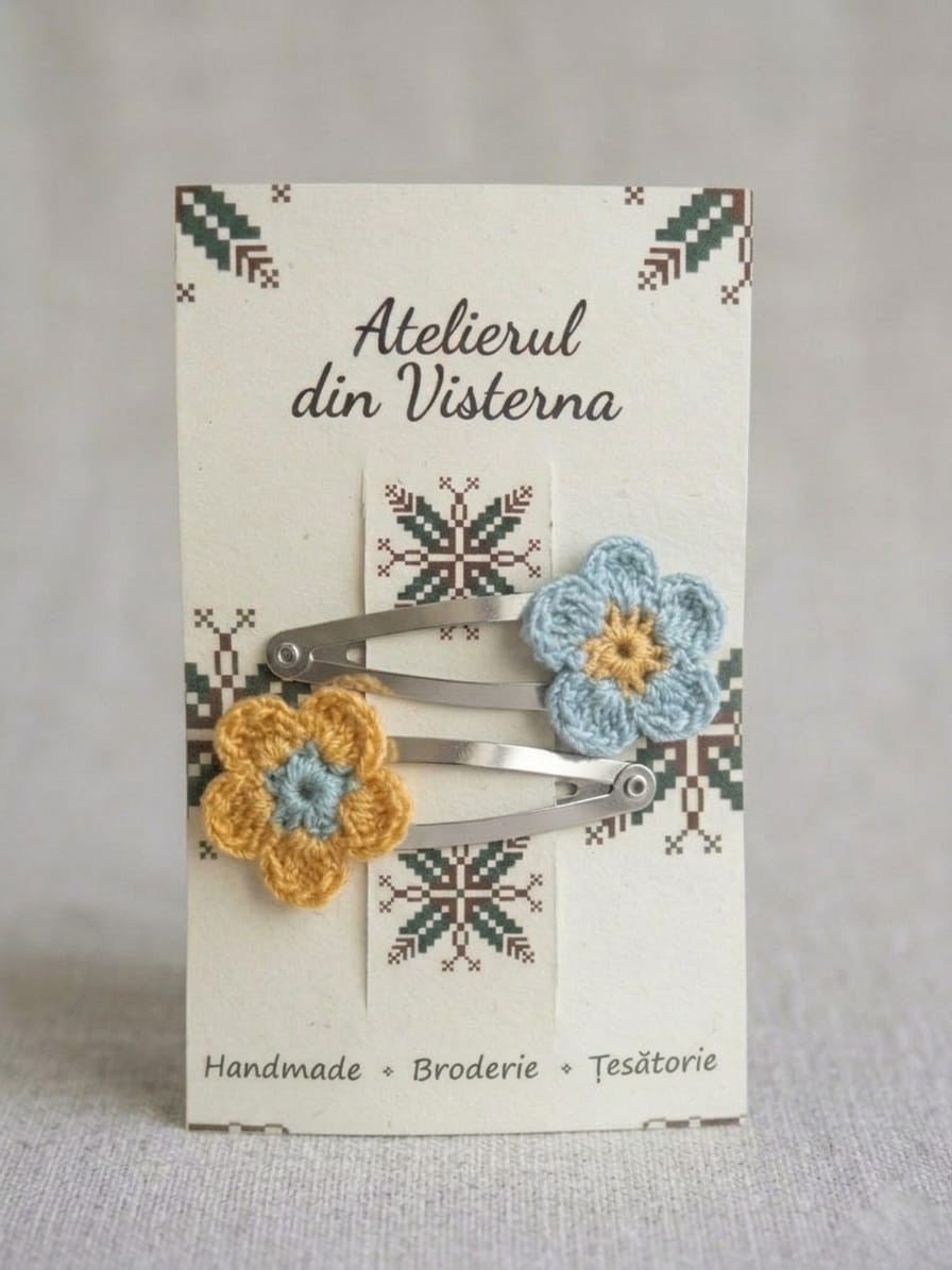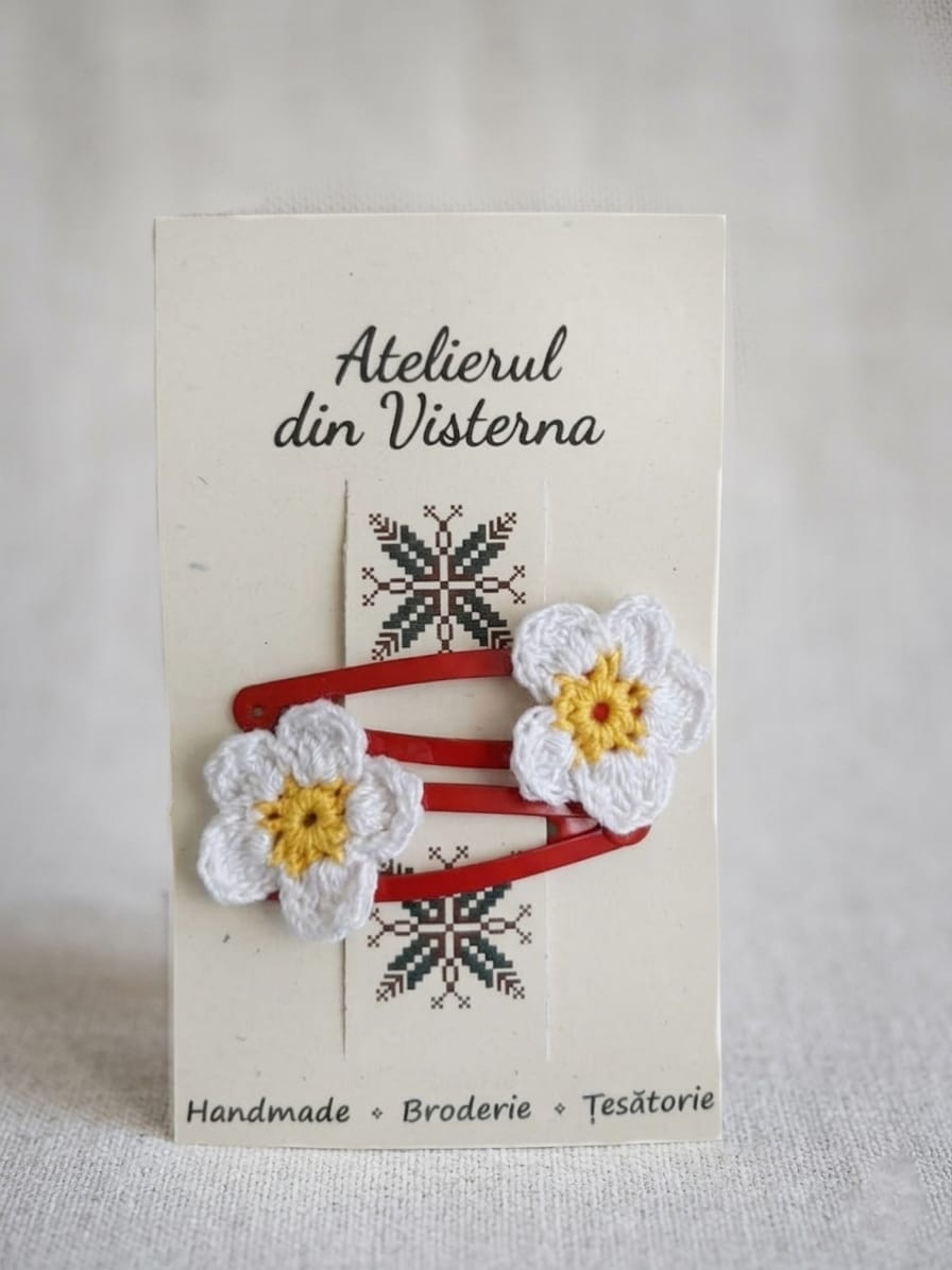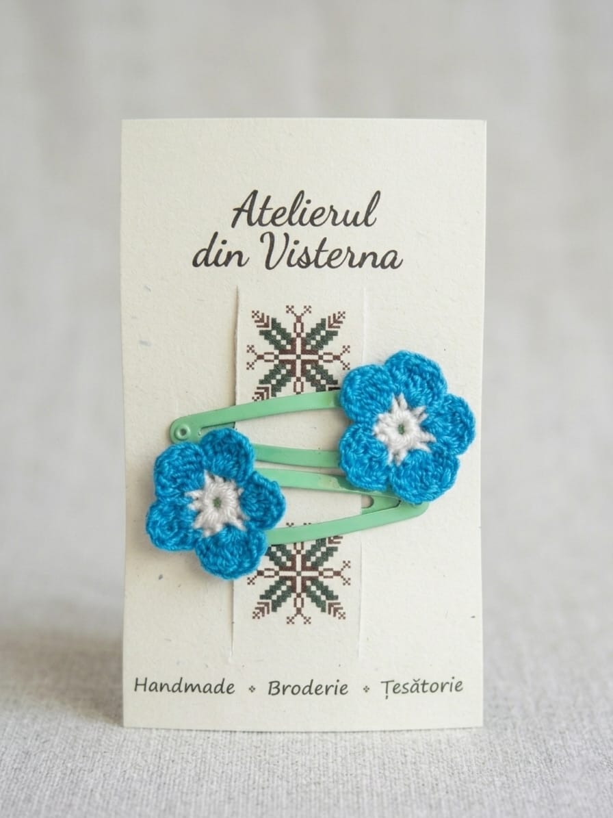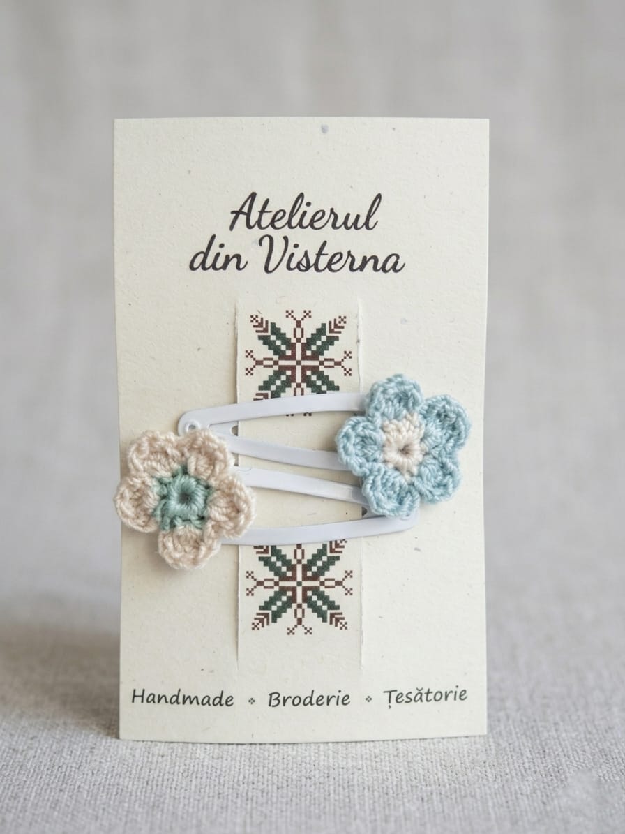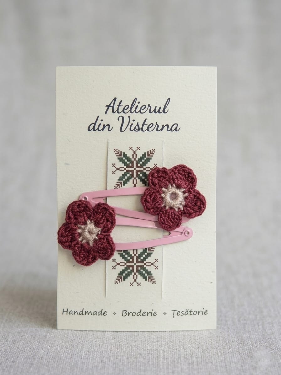 • Realizată handmade: Fiecare agrafă este realizată manual cu atenție, prin croșetare și lipire, oferind unicitate și calitate superioară.