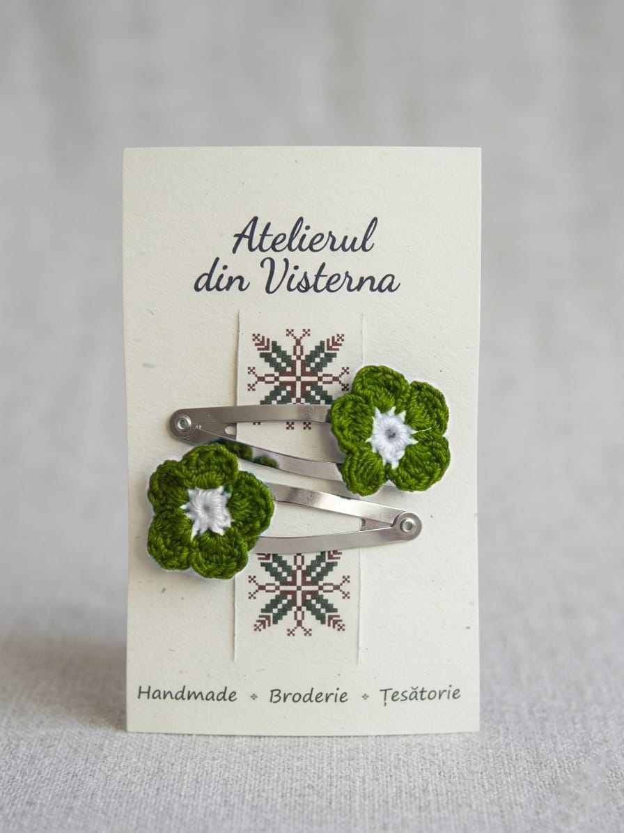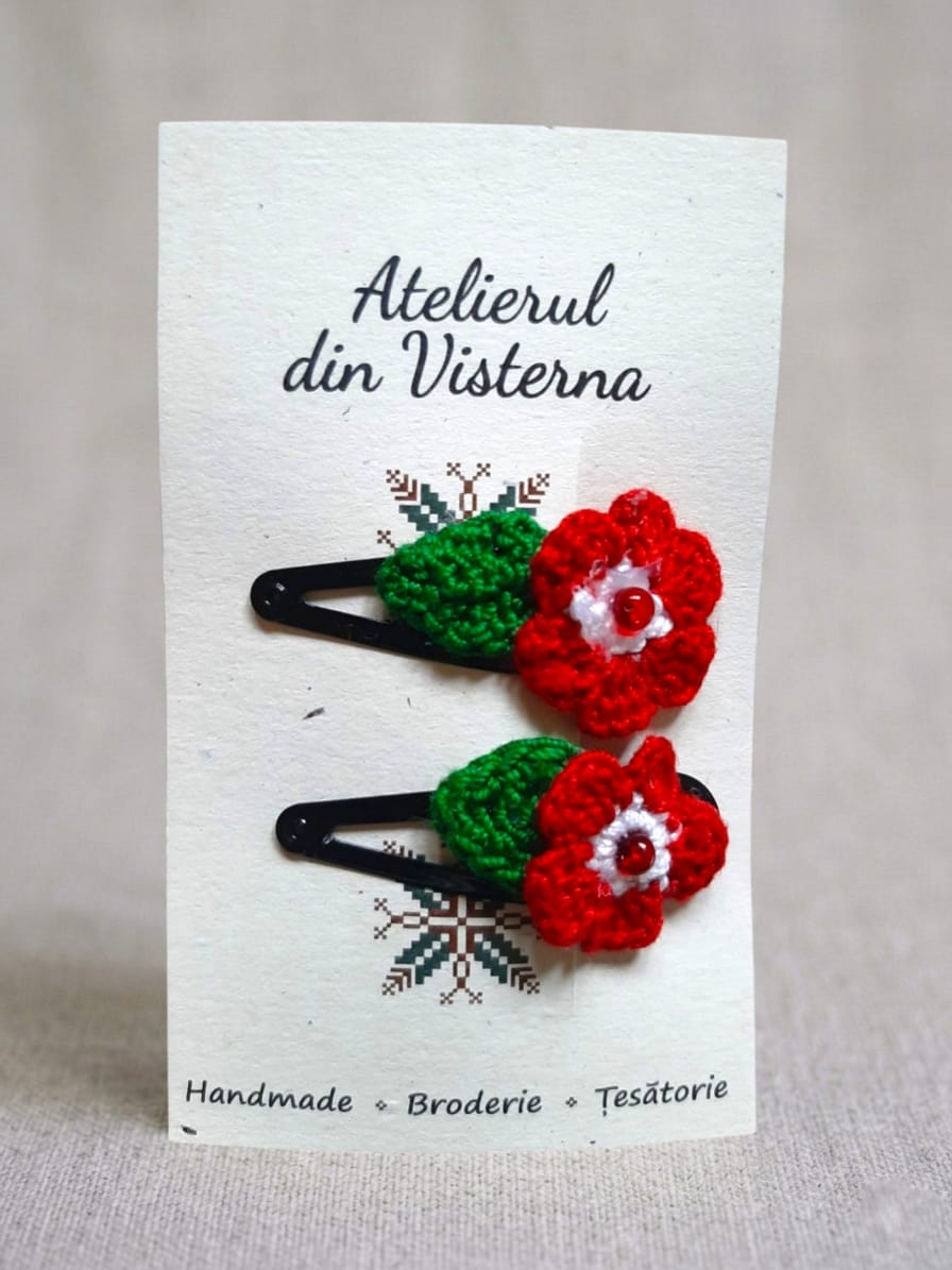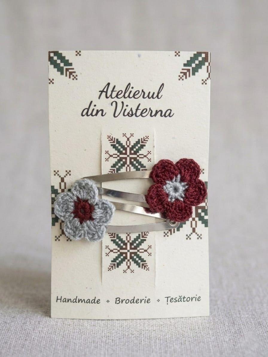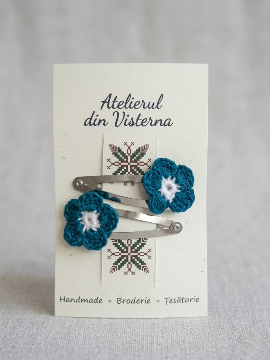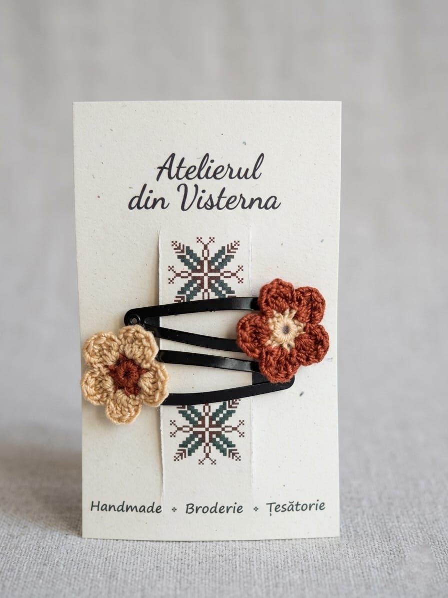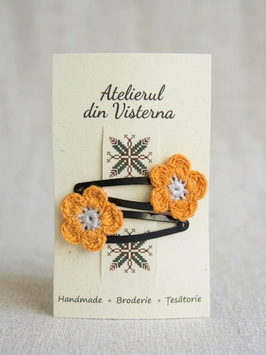 • Realizată handmade: Fiecare agrafă este realizată manual cu atenție, prin croșetare și lipire, oferind unicitate și calitate superioară.