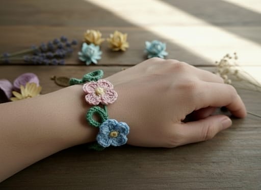 - Design cu flori:Florile croșetate manual direct pe brățară adaugă o notă feminină și elegantă oricărei ținute