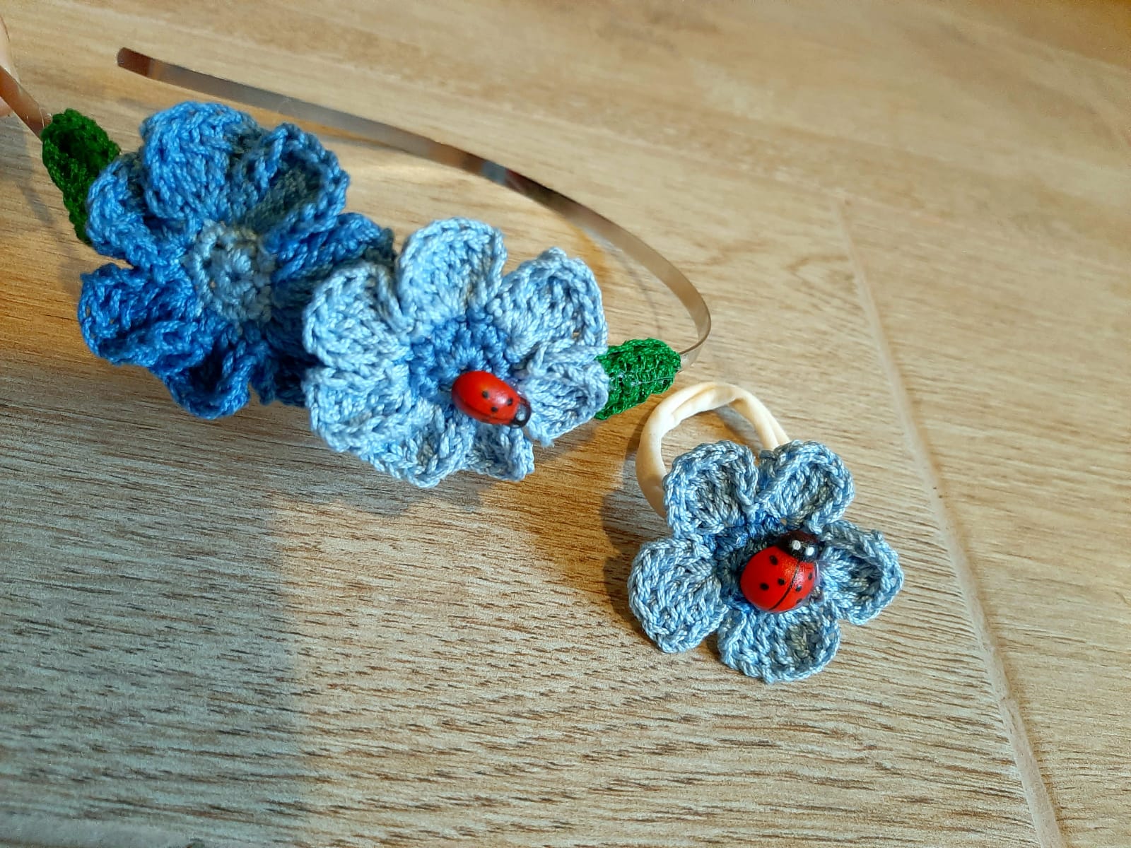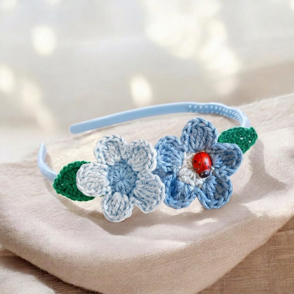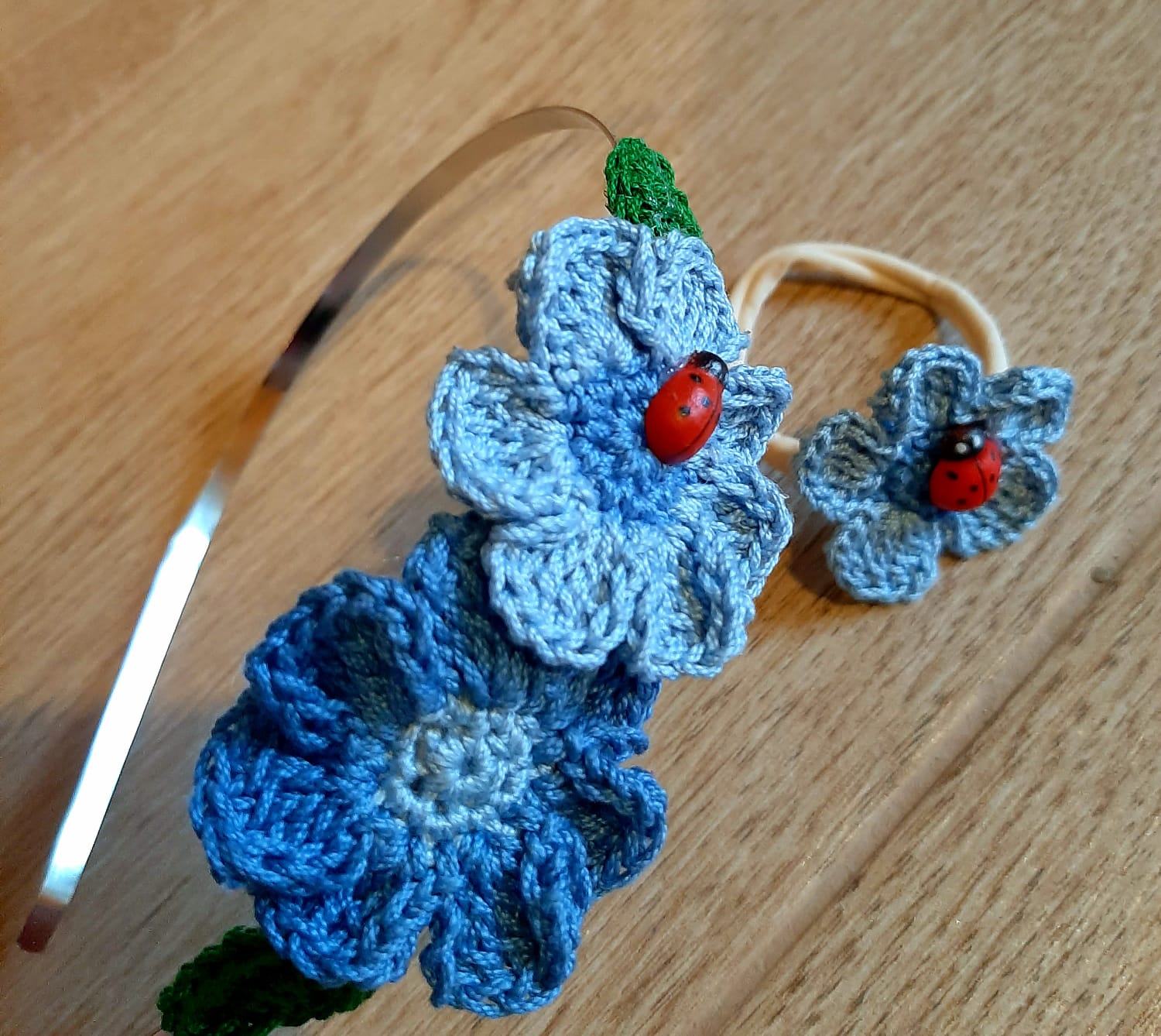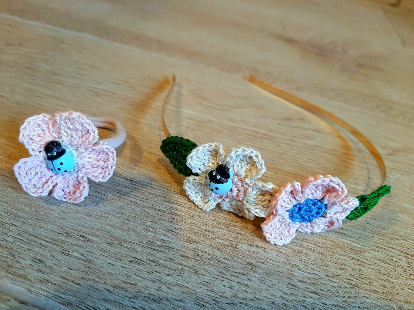 Bentiță de cap, cu bază metalică și decor floral croșetat manual – un accesoriu autentic și elegant, ideal pentru a adăuga originalitate oricărei ținute.